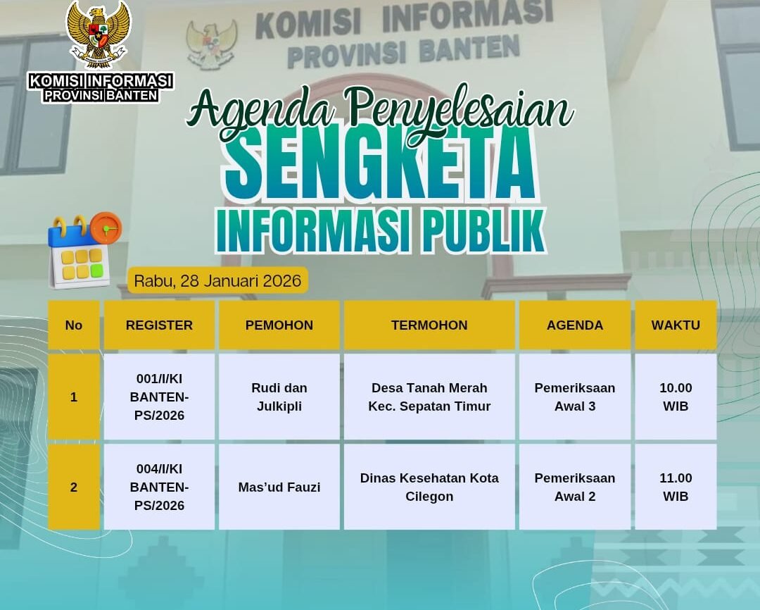 BantenNet, TANGERANG – Ketidakhadiran Termohon selaku Badan Publik dalam sidang sengketa informasi di Komisi Informasi (KI) dapat berujung pada konsekuensi hukum serius. Dalam proses ajudikasi non-litigasi, Majelis Komisioner berwenang mengabulkan permohonan Pemohon secara keseluruhan apabila Termohon mangkir atau tidak menyerahkan data dan dokumen yang diminta.